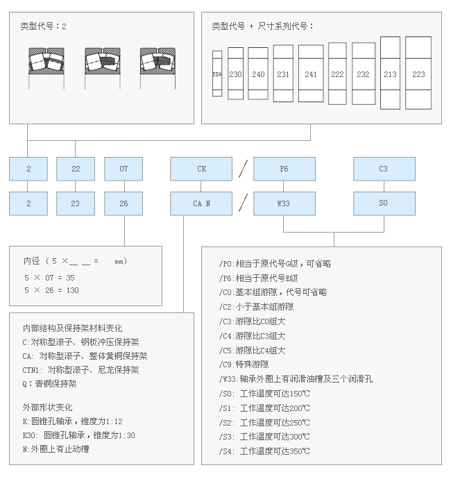 b、具有自動調心的功能,即內圈軸線相對外圈軸線有較大傾斜時(一般在3度以內)仍能正常運轉