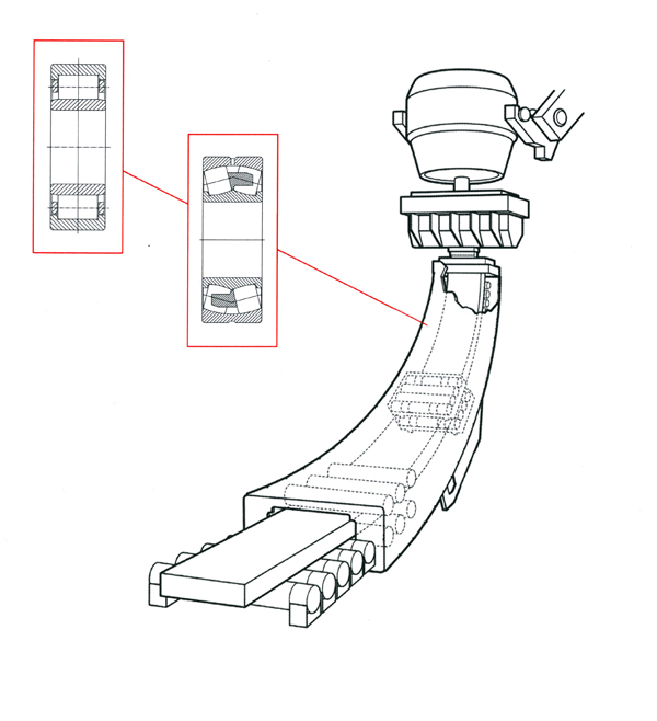 在冶金行業(yè),TWB產(chǎn)品主要應(yīng)用于連鑄機(jī)、熱軋前后及加熱爐的運(yùn)送輥道等。針對連鑄機(jī)在高溫、重載、重污染的工況條件下連續(xù)工作的應(yīng)用特點(diǎn),TWB開發(fā)了專用于連鑄機(jī)的系列產(chǎn)品,主要應(yīng)用于結(jié)晶器振動裝置、扇形段及冷卻段板坯輸送輥道,并已在國內(nèi)外多家鋼廠的新生產(chǎn)線上成功運(yùn)行。TWB也是鋼鐵生產(chǎn)企業(yè)的日常維修軸承的重要供應(yīng)商,產(chǎn)品廣泛應(yīng)用于齒輪箱、風(fēng)機(jī)及輸送輥道等。